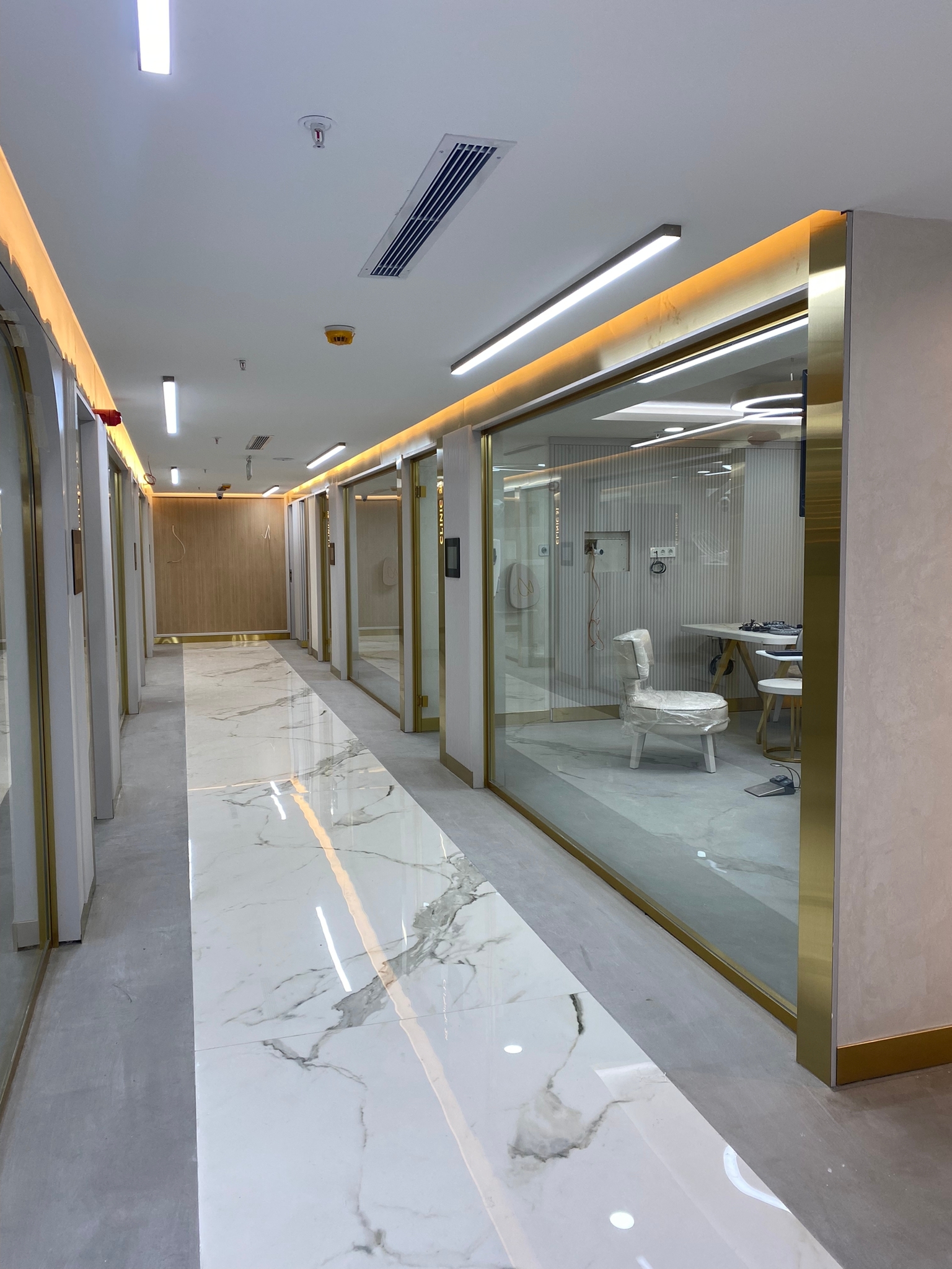 Proje kapsamında tüm ince yapı imalatları, mekanik ve elektrik altyapı koordinasyonları, mimari uygulamalar, özel üretim mobilyalar ve medikal kullanım gerekliliklerine uygun detay çözümleri titizlikle gerçekleştirilmiştir. Sağlık yapılarının gerektirdiği hijyen, fonksiyonellik ve kullanıcı konforu kriterleri ön planda tutularak, modern ve prestijli bir sağlık mekânı oluşturulmuştur.